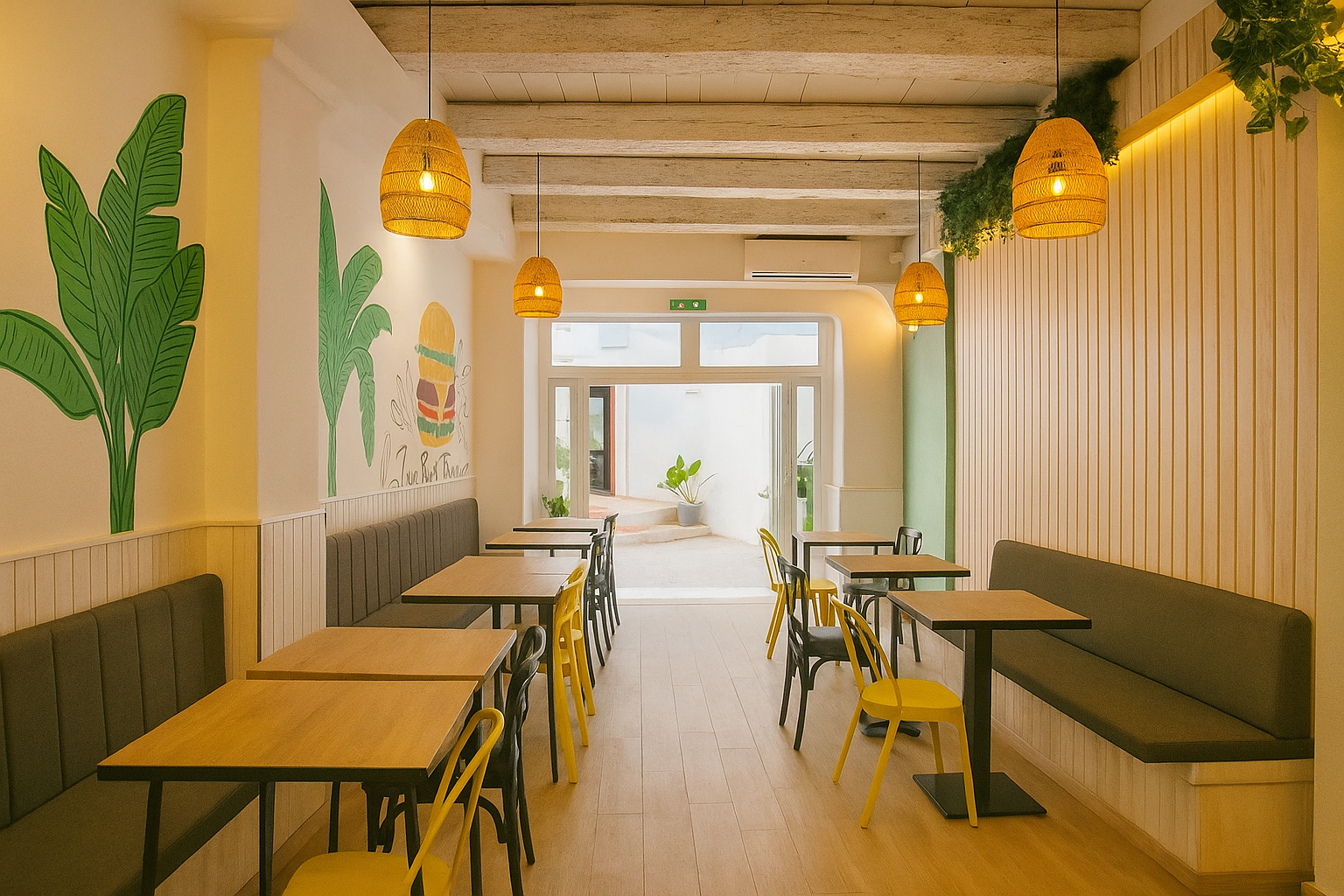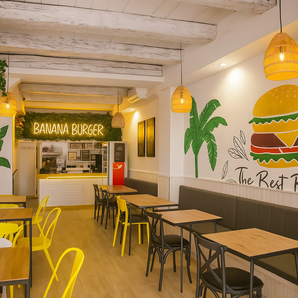 Un vistazo al corazón de Banana Burger Bar en Puerto del Rosario. Desde la decoración canaria hasta el ambiente vibrante, cada detalle está pensado para que te sientas como en casa. ¡Ven y vive la experiencia!